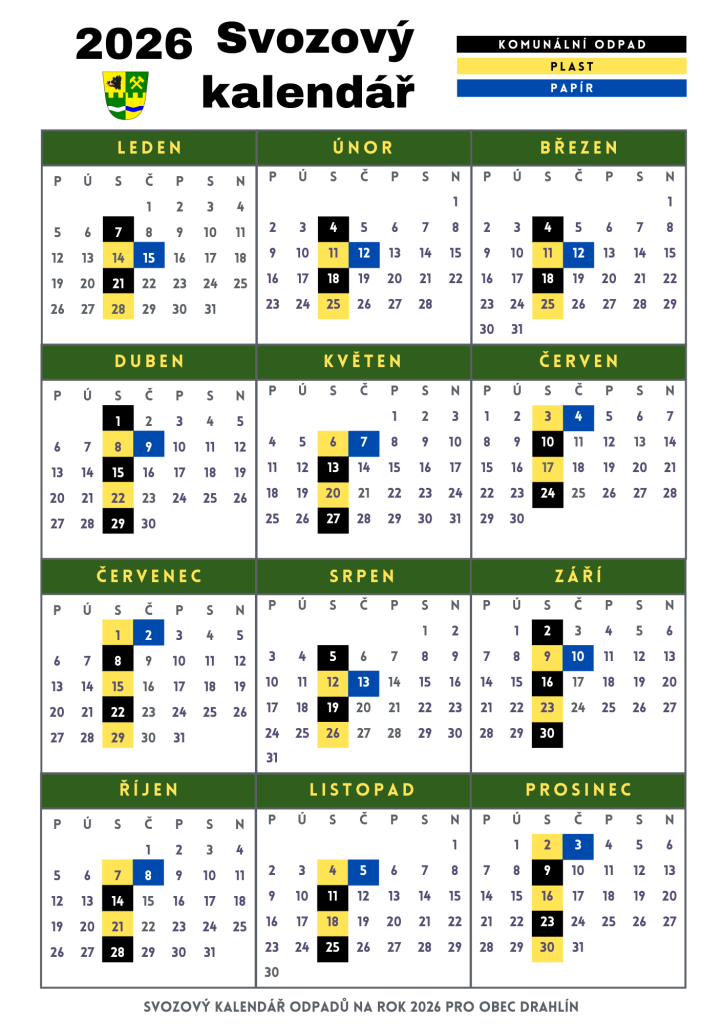 Sdílený kalendář svozu odpadu na rok 2026 ZDE