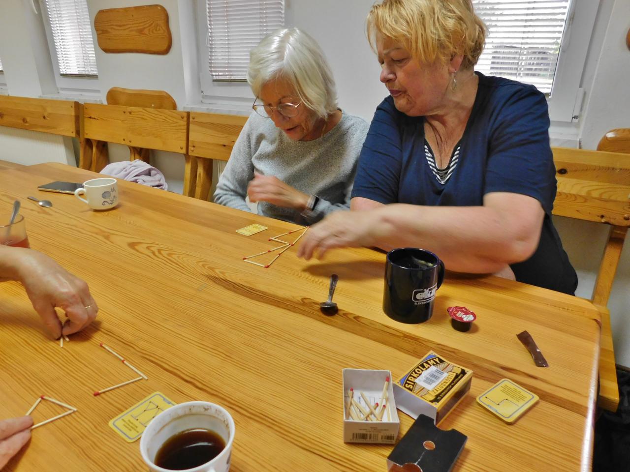 22. května 2025 nás bylo 9 a nebylo zrovna příznivé počasí pro opékání špekáčků, takže jsme se opět přesunuly do haly a tam cvičily. Nejprve mozkové závity při společenské hře se sirkami, které se různě dle pravidla přesouvaly tak, aby z určitého obrazce vznikl obrazec jiný. A potom tělo při cvičení s kvádrem, který vypadal jako trochu větší cihla. Končily jsme tanečky, při kterých jsme se příjemně zahřály.