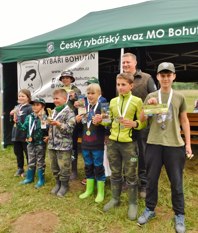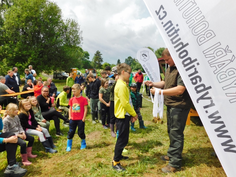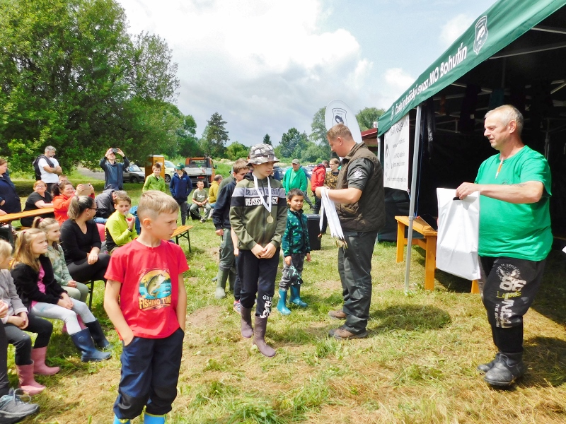 Rybářský svaz Bohutín uspořádal ve spolupráci s Obcí Drahlín rybářské závody dětí na rybníku V Luhu 8. června 2025.