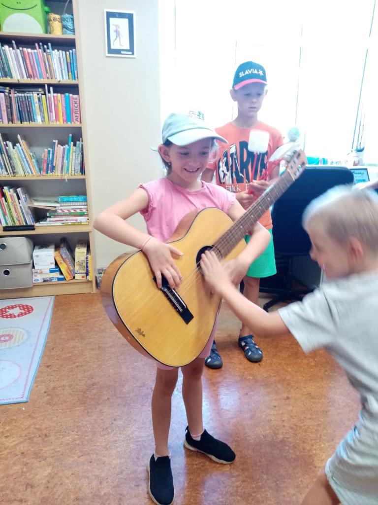 Druhý týden v červenci jsme se v knihovně vydali s dětmi za dobrodružstvím s českým Honzou. Hlavní aktivitou každého dne byla četba pohádek z knížky Český Honza, ze kterých se pak odvíjel zbytek každého dne. Všech 16 dětí už ví, že Honza může mít v příbězích různé podoby, například, může být hloupý, chytrý, líny anebo statečný. Mimo to jsme si s dětmi zpívali za doprovodu kytary a hudebních dřívek lidovky, naučili se anglickou písničku ´Wheels on the bus´ a naše muzikantské dovednosti pak předvedli všem rodičům závěrem týdne.